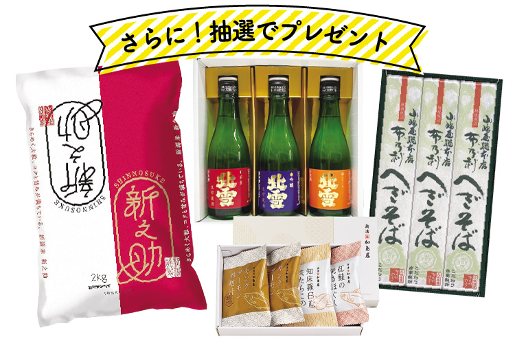更にガラポン抽選で、新潟県ゆかりの品をプレゼントします!